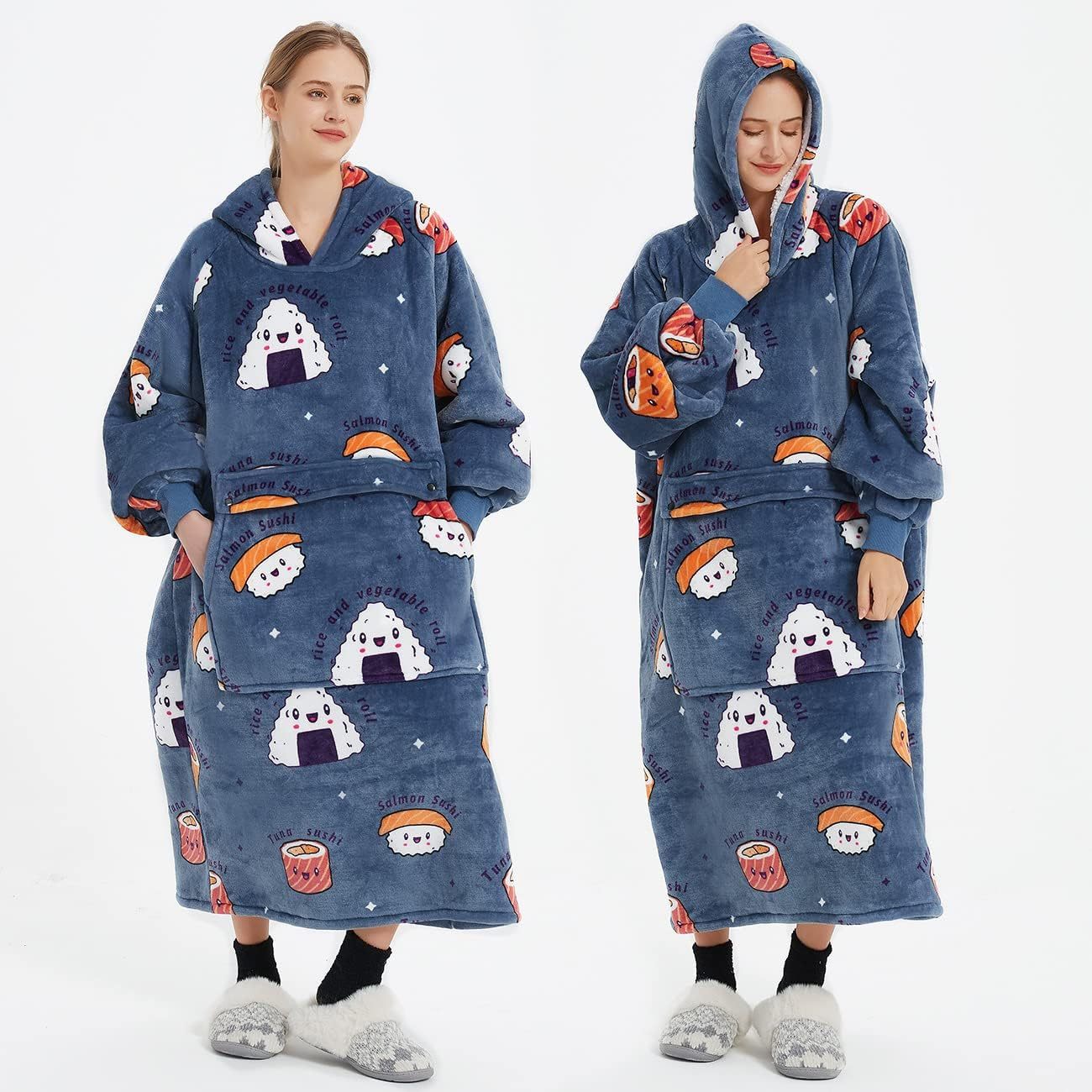 • Designs:Wearable blanket combines the efficiency of the"hoodie"design, which resulted in super comfortable and very warm hoodie blankets.not only does this hooded sweatshirt style have a sherpa lining, kangaroo pouch, and ribbed cuffs, but it's also available in a range of fun prints.