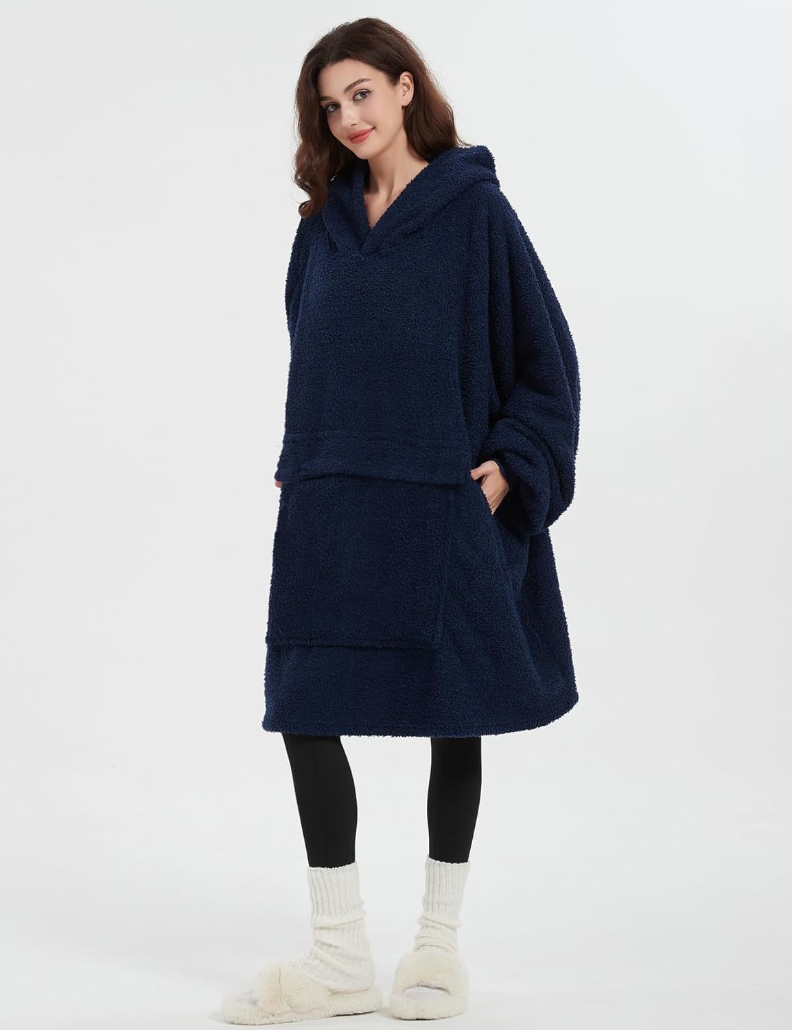 KFUBUO Navy Sherpa Oversized Hoodie Blanket