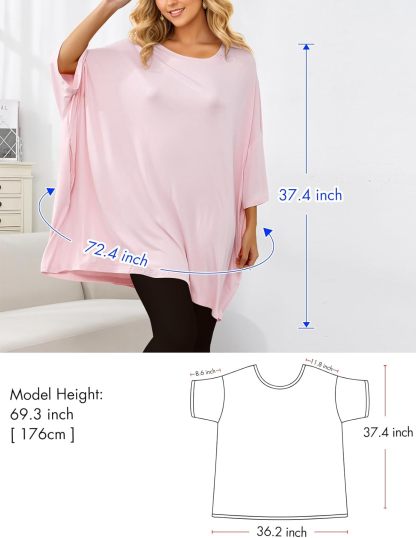 • One size fits most(Fit S-5XL): Plus size nightgowns measure in at a generous and roomy 80cm long and 170cm wide (total circumference).This nightgown is designed to midway between the knees, roomy armholes and short sleeves, simple pullover styling.The loose-fitting elastic design also suitable for any period of pregancy.
