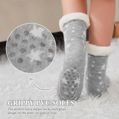 Grippy PVC Soles: The womens fuzzy slipper socks with grips design on the soles, no slips or trips.