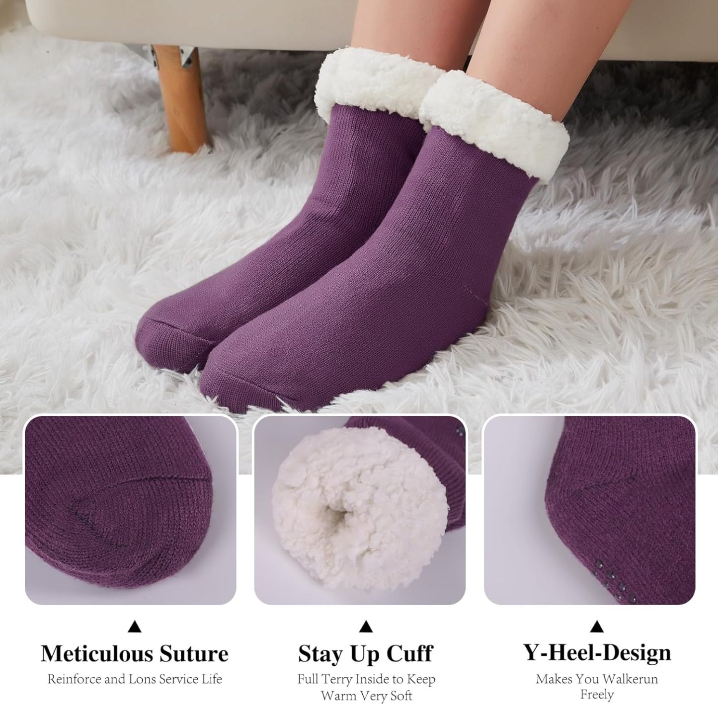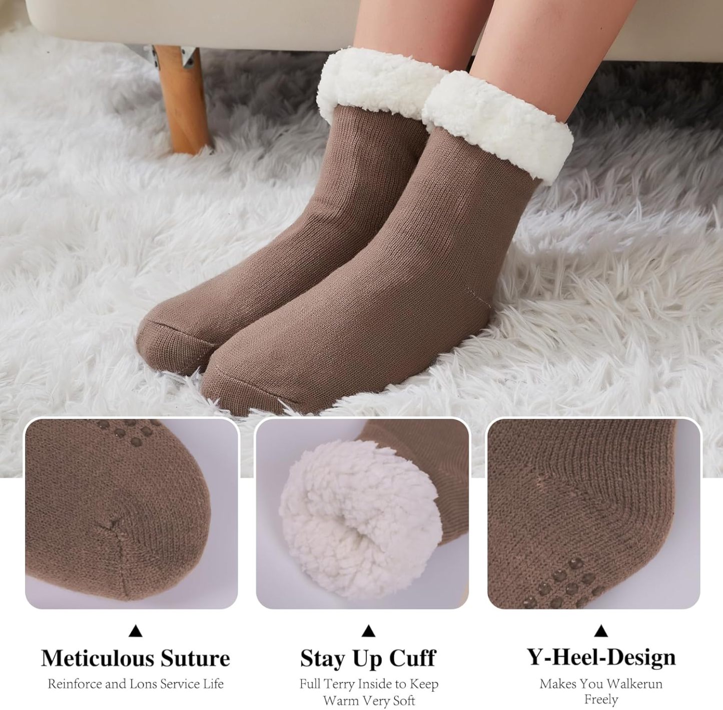 Warm Slipper Socks: Pamper your feet with the marshmallowy softness of premium sherpa fleece lining socks.